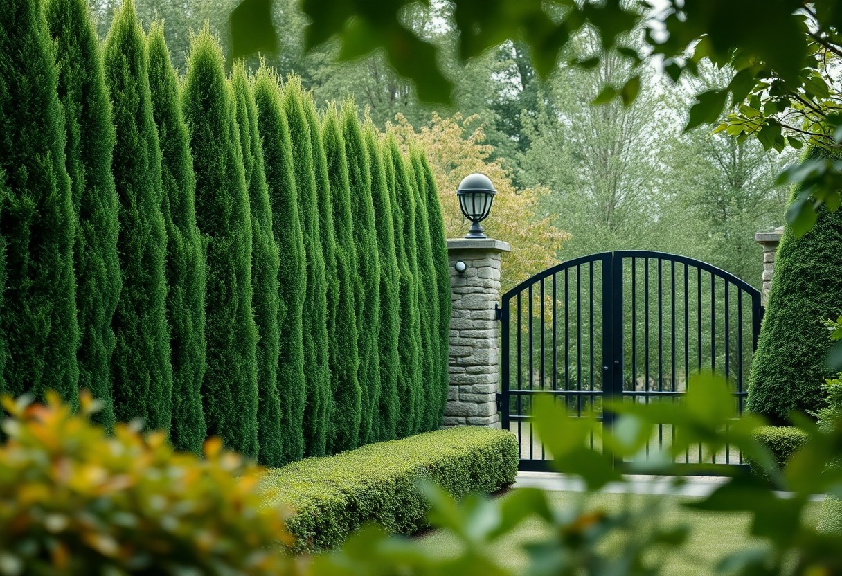 Choisissez des essences persistantes (laurier, photinia) plantées tous les 0,5-1 m pour atteindre 1,5-2 m en 3-5 ans ; complétez par berberis ou houx en bordure pour un effet dissuasif immédiat. Intégrez un arrosage intelligent et des capteurs de sol pour limiter l’entretien et garantir une croissance saine, et assurez la coordination avec vos capteurs et éclairages pour une protection à la fois efficace et discrète.