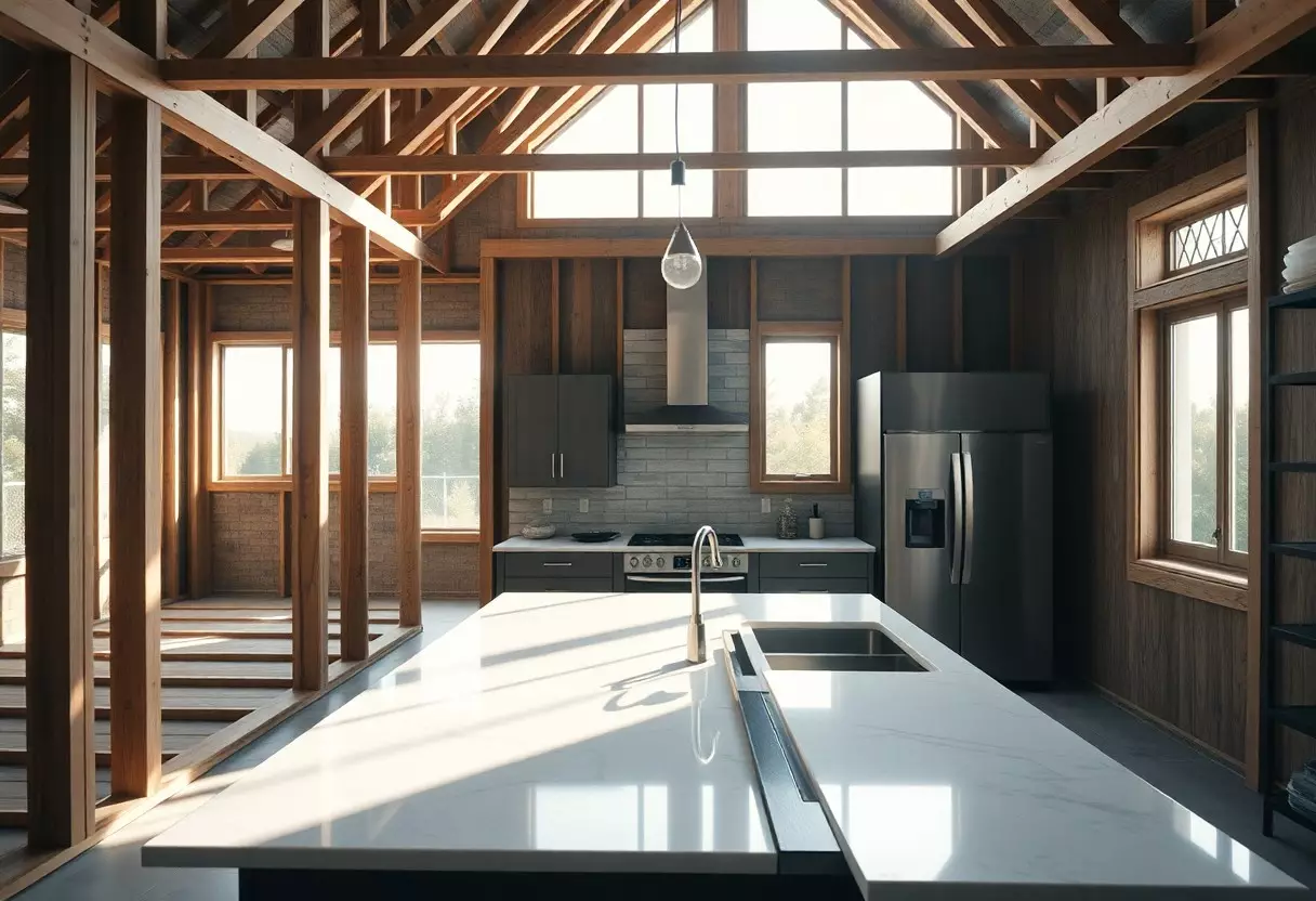 A: Cela fait référence à notre processus de transformation d’un espace vide, comme une construction inachevée ou un bâtiment ancien, en une maison complètement fonctionnelle et prête à être habitée. Cela inclut tous les aspects, de la planification à l’aménagement intérieur.