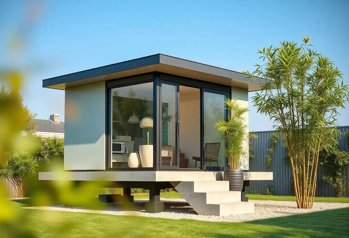 - Privilégier des structures compactes et modulaires (préfabriquées, sur pilotis ou à fondation réduite) et un grand vitrage pour apporter lumière et agrandir visuellement le jardin.