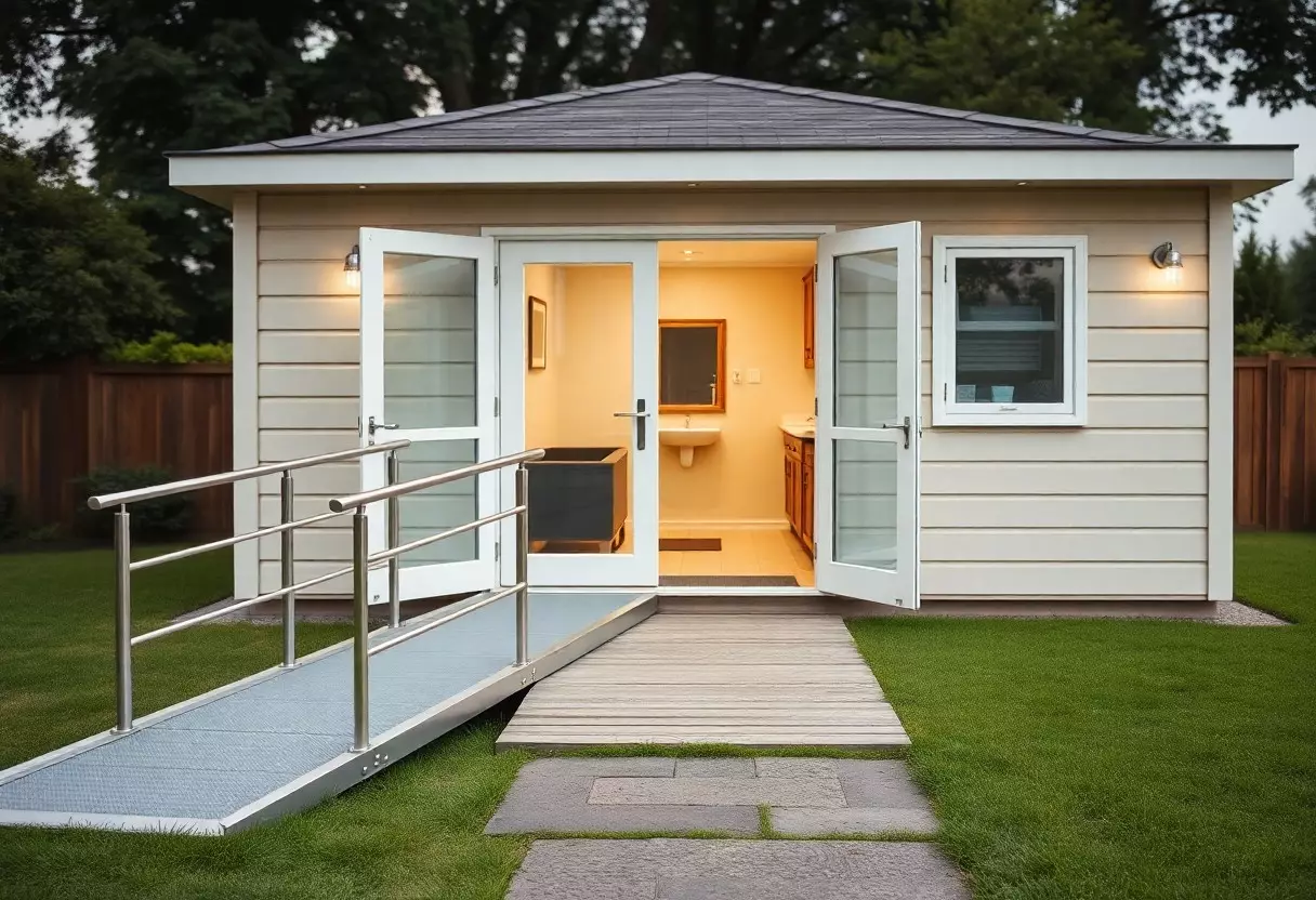 Vous choisirez entre ossature bois, modules préfabriqués, containers aménagés ou maçonnerie in situ selon budget et terrain; les studios modulaires typiques coûtent entre 20 000 et 60 000 € clé en main, avec fondations additionnelles (≈1 500-5 000 €) et pose en 2-12 semaines. Veillez à la largeur de porte ≥90 cm, diamètre de rotation ≥150 cm, douche accessible 90×120 cm et seuils 2 cm; confiez l’installation à des entreprises expérimentées en PMR pour éviter la non-conformité.